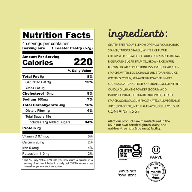 Bursting with strawberry sweetness, these toaster treats are wrapped in a golden, cookie-like crust with a touch of vanilla-flavored icing. Individually wrapped for on-the-move munching